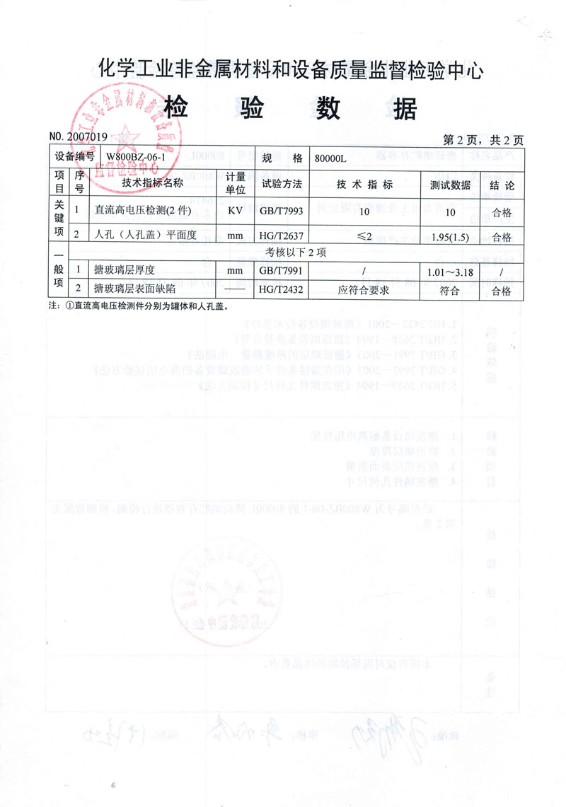 • 搪玻璃設(shè)備合格檢驗報告